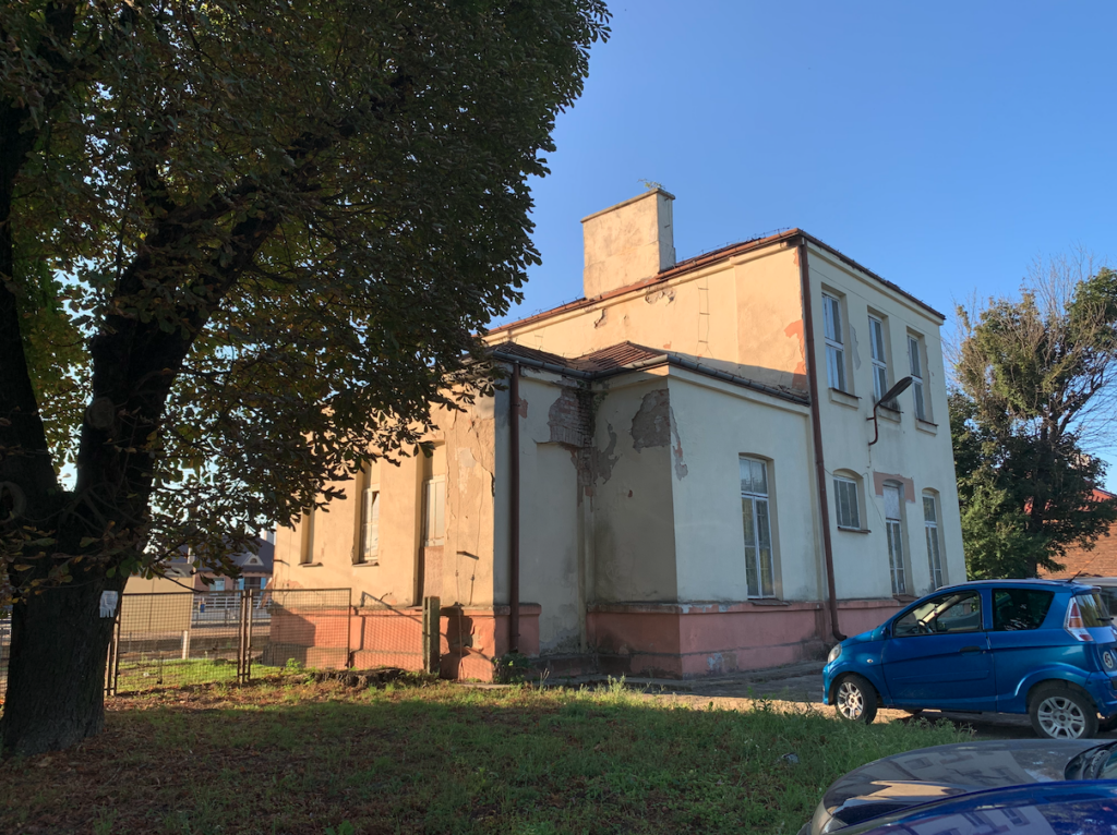 Dworzec został zbudowany po wschodniej stronie torów. Budynek nie jest duży i został zbudowany z cegły, w stylu modernistycznym z prawie płaskim dachem. Budynek jest wielobryłowy, dwukondygnacyjny, z wysokimi prostokątnymi oknami. Na obu frontach budynku były umieszczone zegary, które obecnie nie istnieją. Budynek nie otrzymał wielu elementów architektonicznych. Główne wejście jest umieszczone od strony torów i otrzymało ozdobny portal. W budynku funkcjonowała kasa, poczekalnia, pomieszczenia służbowe, a także prawdopodobnie na piętrze były mieszkanie. Toalety znajdowały się w osobnym budynku. W 90-latach, kasa i poczekalnia zostały zamknięte. W trakcie remontów, budynek otrzymał kopertowe dachy z niewielkim spadkiem. Dach pokryty jest gładką blachą. Budynek jest obecnie (2025 roku) jest nieużytkowany.